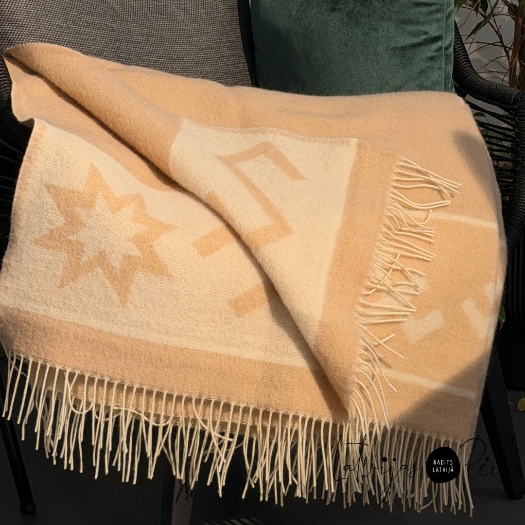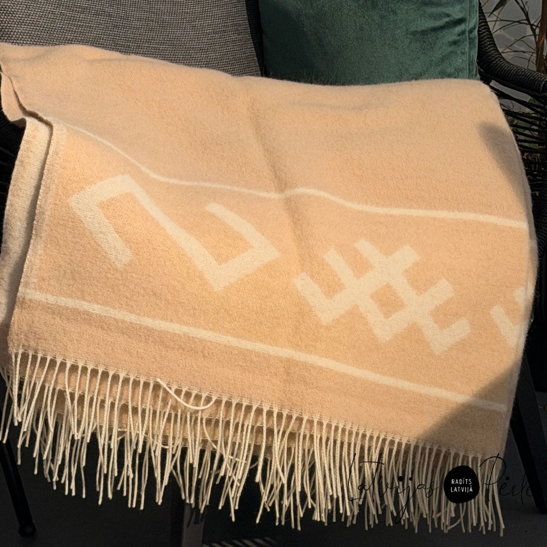 Vilnas pleds ar latvju zīmēm 140x205cm – Latvijas Pērles