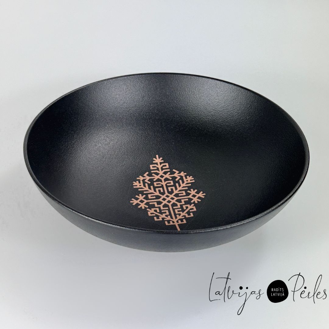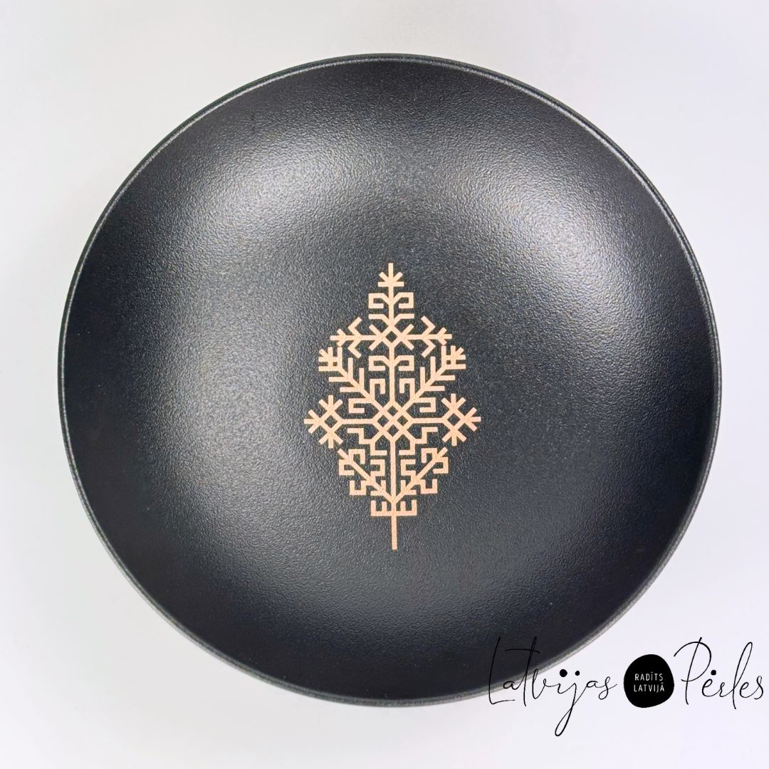 Eleganta porcelāna bļoda melnā krāsā ar Austras koka dizainu dekol tehnikā veidotu. Bļodas diametrs 21cm. Var mazgāt trauku mazgājamajā mašīnā.